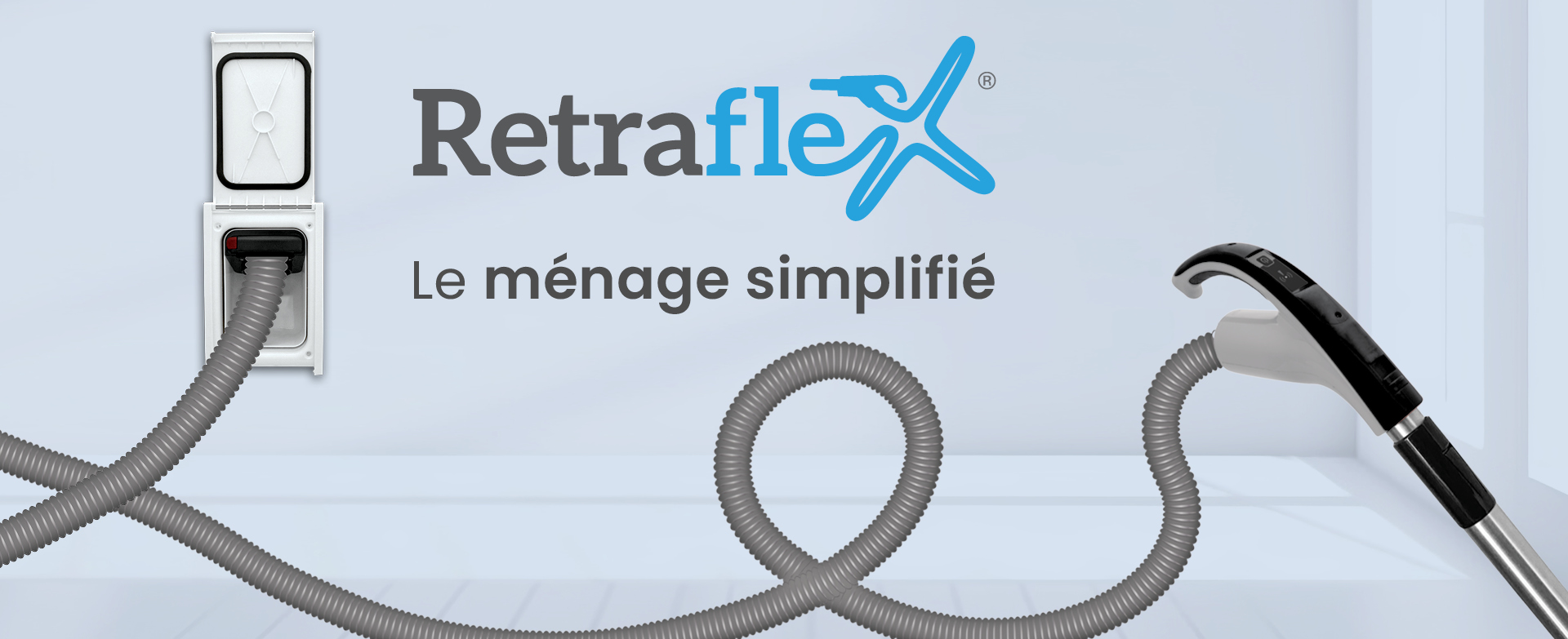Ne pensez plus à un rangement pour votre boyau d’aspirateur central. Le Retraflex® est dissimulé à l’intérieur de vos murs et est facilement accessible grâce à une élégante prise murale.